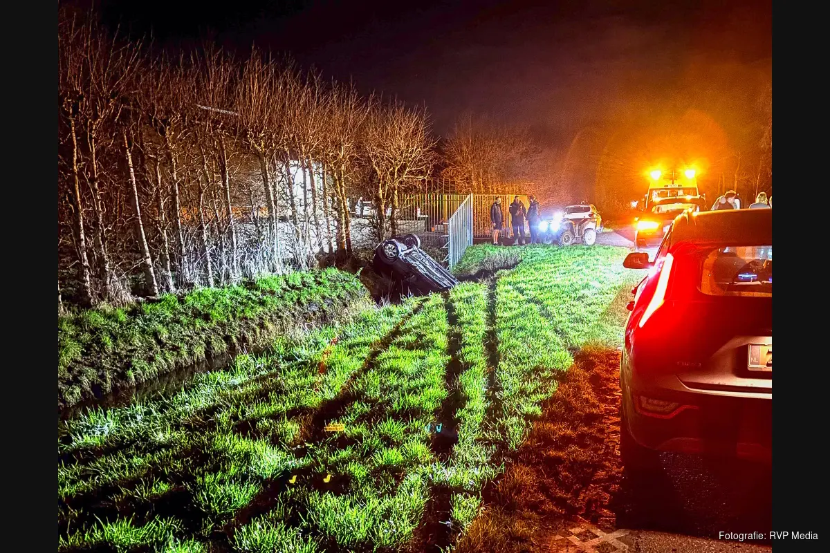 Hulpdiensten rukten massaal uit na de melding. Brandweer, ambulance en politie kwamen met spoed ter plaatse. De auto bleek op zijn kop in het water te liggen. De twee inzittenden wisten op eigen kracht uit het voertuig te komen.
