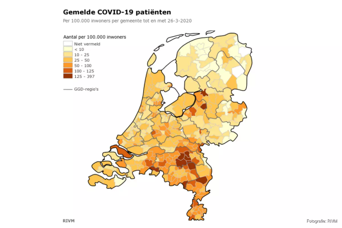 De meeste positief geteste personen wonen in de provincie Noord-Brabant, namelijk 2161 personen. Daarna zijn de meeste positief gemelde patiënten gemeld in Zuid-Holland (1042) en Noord-Holland (1029). In de provincies Friesland en Drenthe zijn de minste besmettingen met respectievelijk 71 en 72 positief geteste personen.